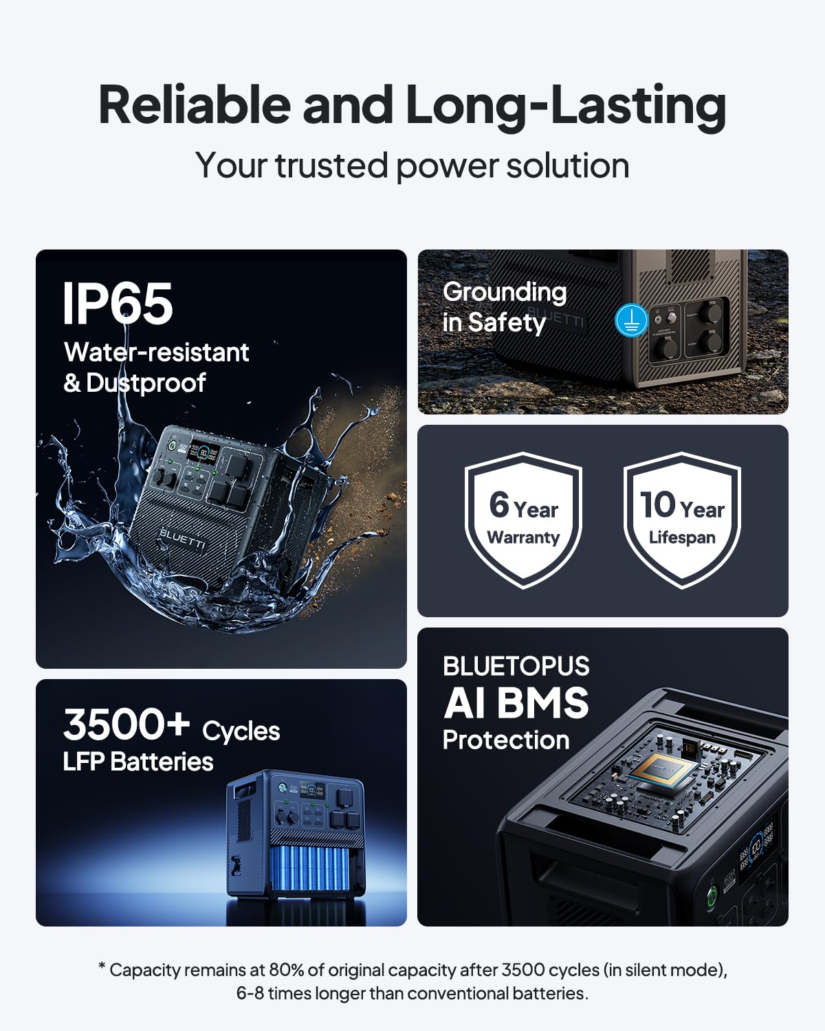 BLUETTI Portable Power Station AC240 and B210 External Battery, Expand to 3686Wh LiFePO4 Battery Backup w/ 3 2400W AC Outlets, IP65 Water Resistant Solar Generator, Home Backup Power for Camping, RV