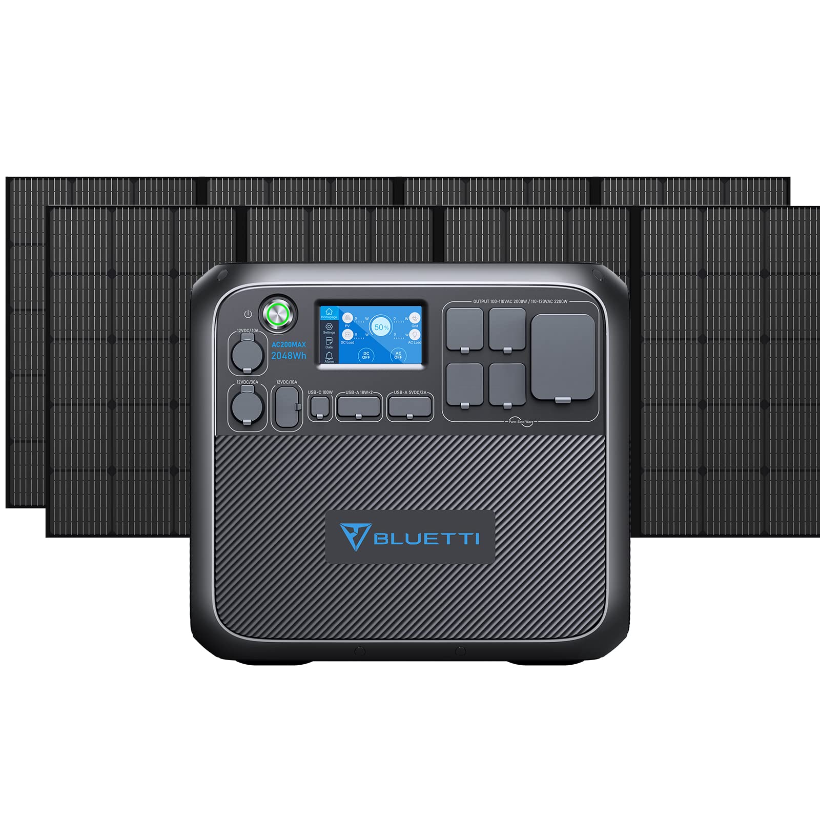 BLUETTI Solar Generator AC200MAX with 2 350W Solar Panel Included, 2048Wh Portable Power Station w/ 4 2200W AC Outlets, LiFePO4 Battery Pack, Expandable to 8192Wh for Home Backup, Road Trip, Off Grid