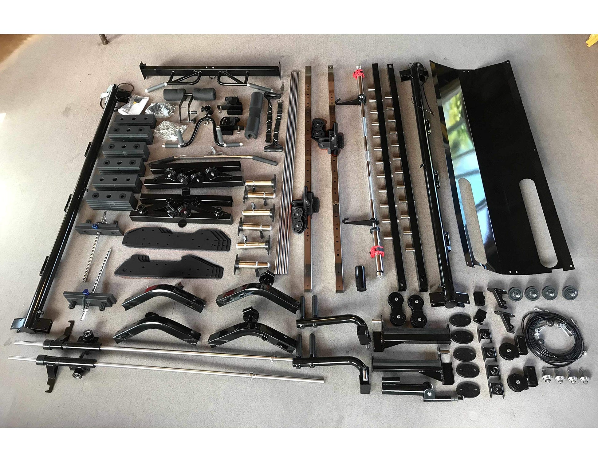 Details: In Stock. This is a great product for a complete workout. Commercial grade multi-functional smith machine with twin pulley cables 1:1 ratio with 16 adjustments for any height cable workouts: arms, chest, back , legs, lat pull downs, power cage for bench press, squats, fixing point for bands. 5-way grip pull up bar, J hooks for dips, leg exercises using the cables, 2*80 kg stack weights (move in 5 kg increments) for the cables exercises. Includes 2x safety spotter bar to protect while working out alone. Weight limit for racks is 990 lbs and 770 lbs for the bar. Cables attach to commercial style weight stack with pick. Counter balanced with sealed bearing pulleys. Comes with jammer arms and foot plate for rows. Note: Standard Machine does NOT include bench and plate weights. Bench included with the Deluxe version and is shown in the following pictures. The bench includes preacher curl station, a leg curls & leg extension attachment, and a feet holding attachment. Plate weights included with deluxe are a set of (4)45 lbs, (2)35 lbs, (2)25 lbs, (2)10 lbs, (2)5 lbs.