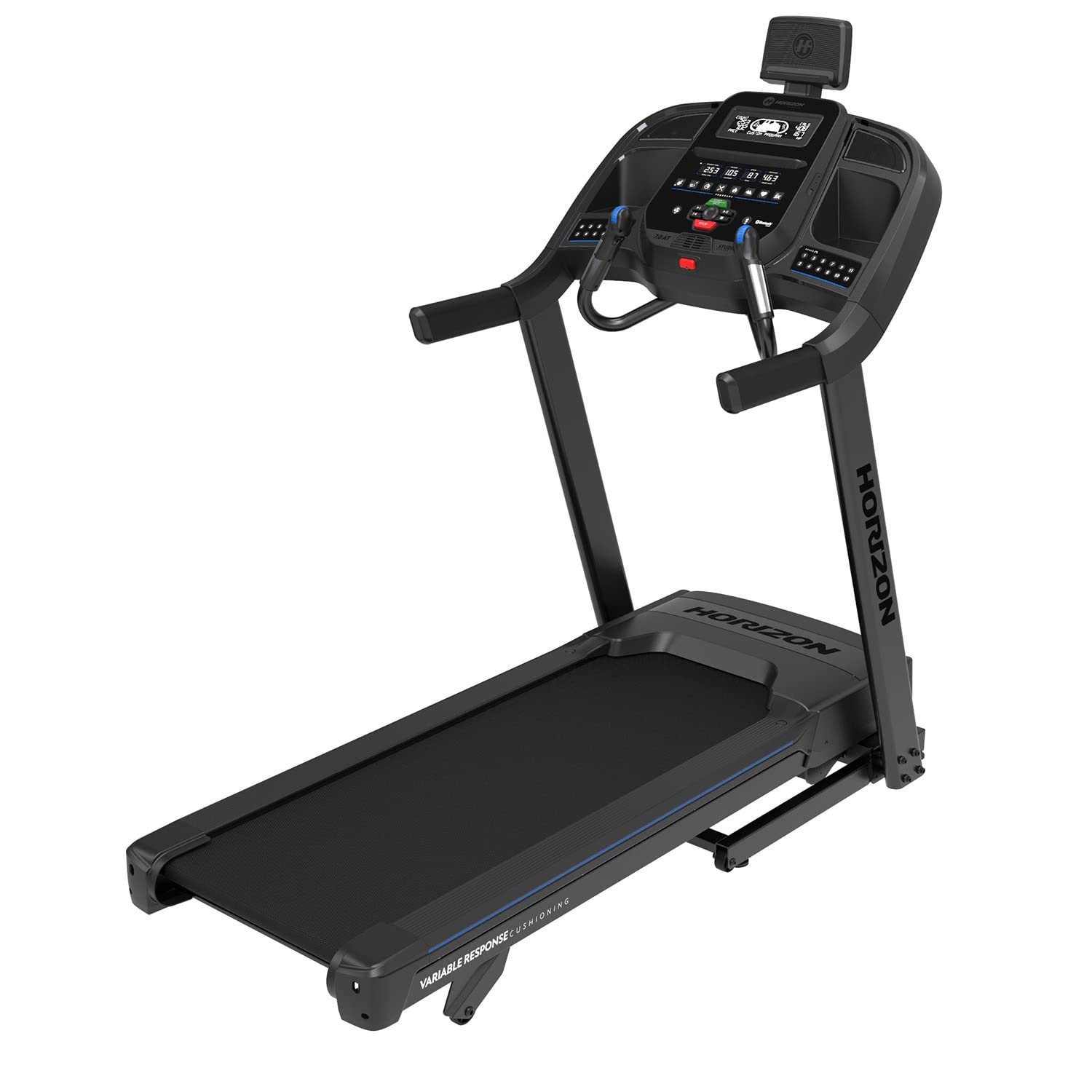 Details: The Horizon Fitness 7.0 AT Studio Series folding treadmill uses Bluetooth to connect with most live or on-demand fitness apps for an immersive home exercise experience. Get the flexibility and versatility you demand, for less than other popular treadmills or gym memberships. Horizon offers the best treadmills for home on the market. Instead of investing in an expensive touchscreen or membership, use your own device to stream whatever fitness classes or media you choose, from workouts to movies and podcasts. Exclusive technologies make this treadmill engineered for use with streaming interval classes. A tablet holder, built-in speakers and a rapid charging port make it easier than ever to enjoy the apps that keep you motivated.
