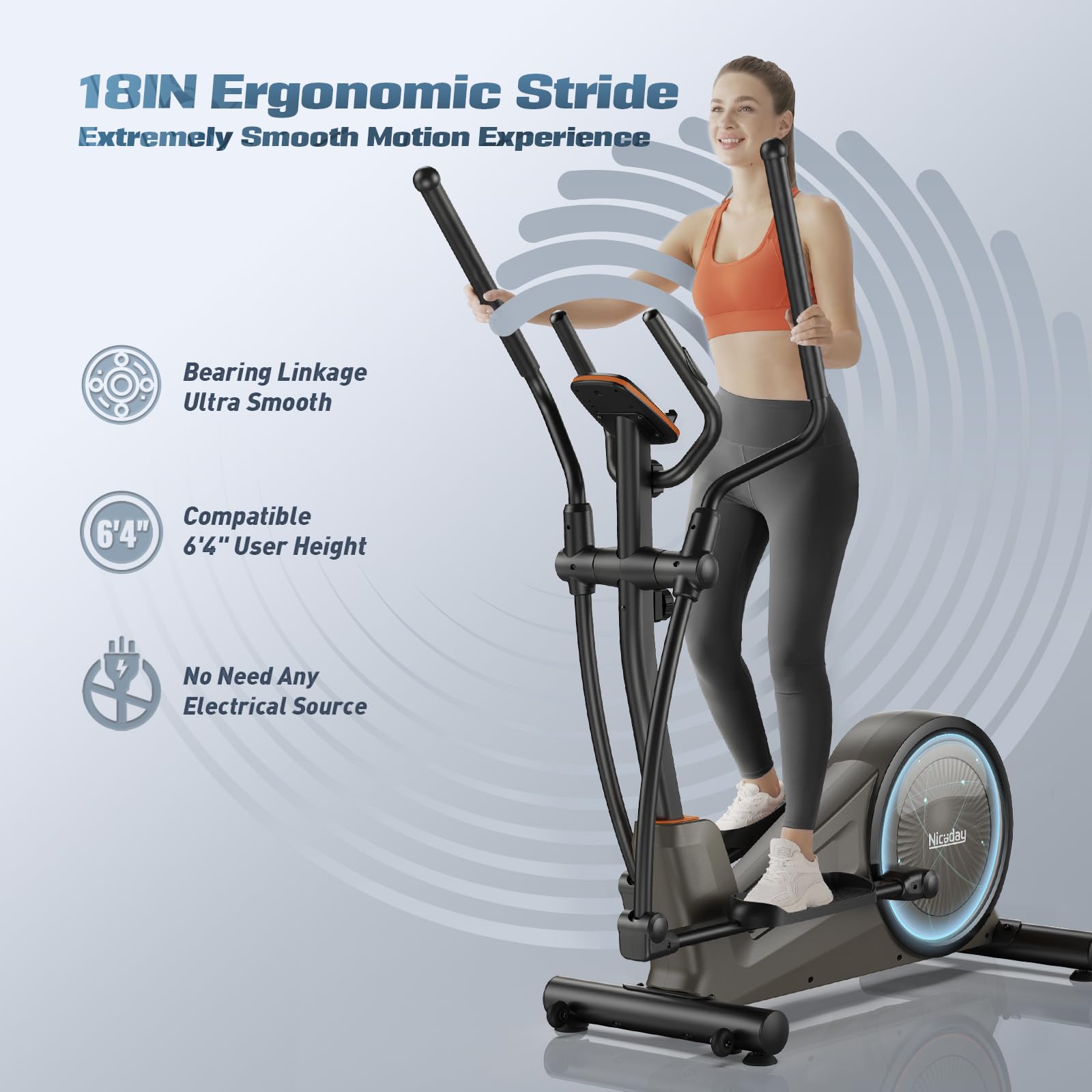 Niceday Elliptical Machine, Elliptical Exercise Machine for Home Use with Hyper-Quiet Magnetic Driving System,18IN Stride, 16 Resistance Levels, 400LBS Loading Capacity, App Supported
