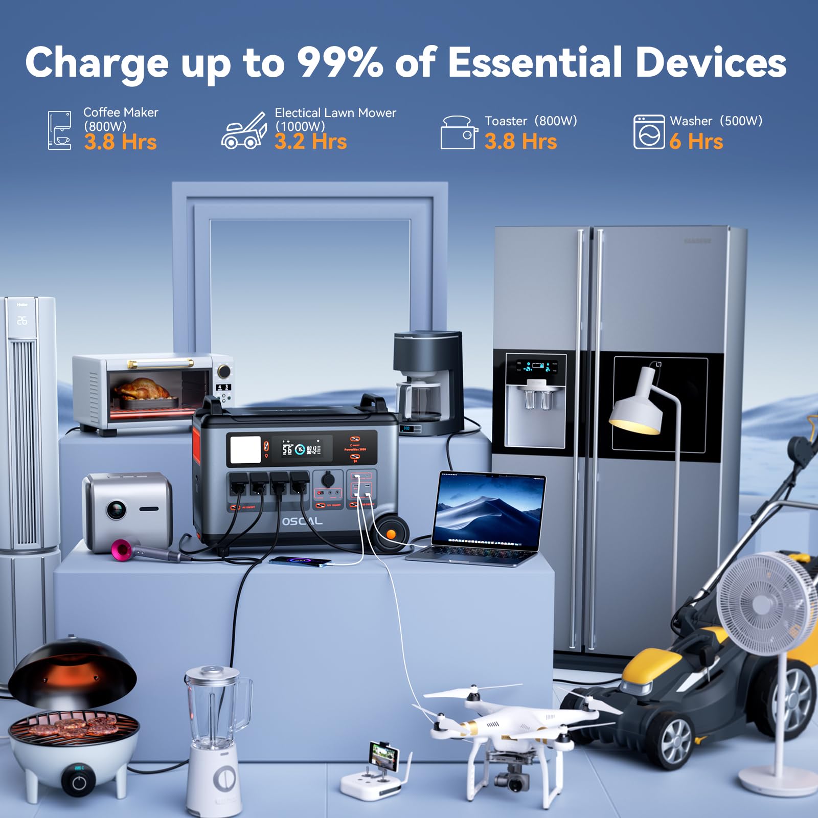 • [Smart Remote Control]--Download the OSCAL application on your smartphone to effortlessly pair and control the portable power station through Wi-Fi or Bluetooth. Monitor power usage and execute remote commands with ease.