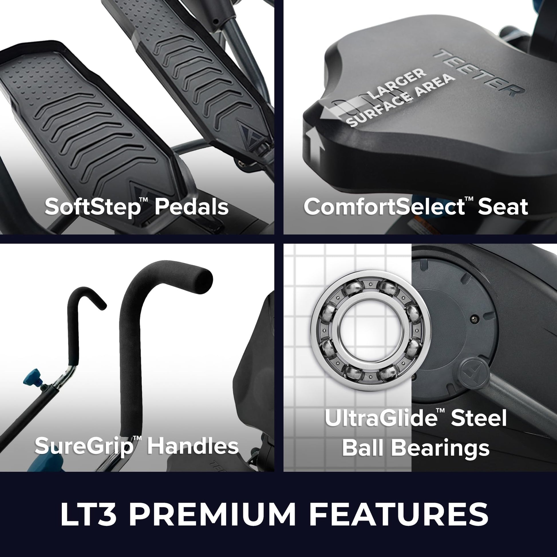 • LT3 PREMIUM FEATURES: UltraGlide Bearings promise long-lasting frictionless motion for fluid start up and stride transitions; SoftStep Pedals with durable grip surface for added traction and control; Larger ComfortSelect Seat with more positioning options; SureGrip handles with high-grade polyurethane coating for unmatched durability. BUNDLE: Includes non-slip, breathable gel seat for cushiony, ergonomic support and durable floor mat.
